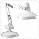 The Luxo combination lamp provides a high light output using a combination of incandescent and fluorescent bulbs. This gives the user a natural sunlight lamp, combining all of the colors in the visual spectrum. It is a lamp that individuals with Macular Degeneration prefer. It is available with a clamp base, weighted table base, or wheeled floor base.